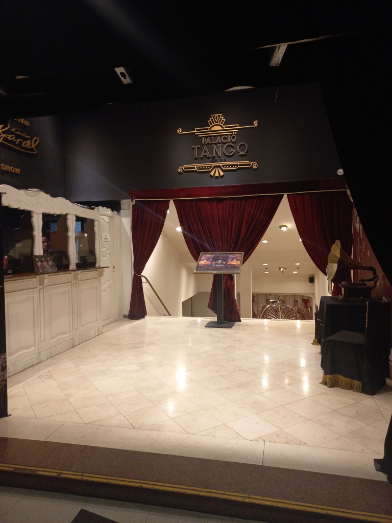 Nuestra emocionante visita al Palacio Tango en Buenos Aires comenzó con la promesa de una experiencia inolvidable. Nos dirigimos primero al emblemático Teatro Carlos Gardel, un lugar que no solo es un ícono de la cultura argentina, sino que también lleva el nombre del legendario cantante de tango, Carlos Gardel. La atmósfera del salón estaba impregnada de historia y pasión, un ambiente perfecto para sumergirnos en el arte del tango.