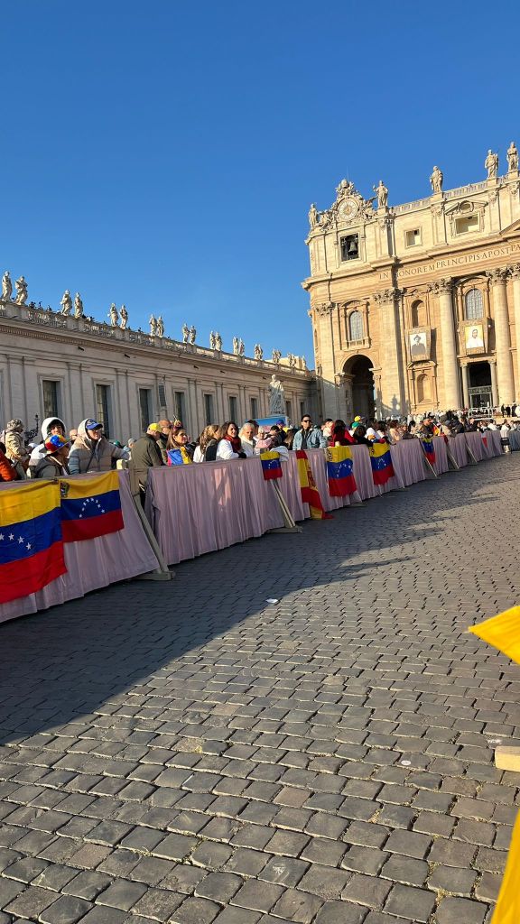 El fervor no cesó con el domingo. El día lunes a las 8 de la mañana, San Pedro nuevamente estaba repleto de venezolanos para celebrar una misa de acción de gracias por nuestros nuevos santos. Las palabras del Cardenal Pietro Parolin nos siguieron llenando de esperanza. Posteriormente, la peregrinación culminó con una audiencia con el Papa, un cierre majestuoso y lleno de gracia.