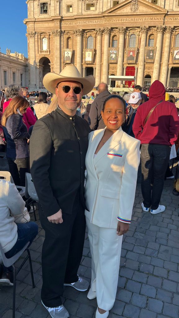 Para honrar este día histórico, muchos llevábamos la fe en el corazón y el gentilicio en la piel. En mi caso, como orgullosa llanera, asistí a la ceremonia vestida con un Liquiliqui. Esta prenda, nuestro traje nacional, un símbolo palpable de la dignidad y el sentir venezolano, realzado por un tocado en el cabello adornado con flores de los colores de nuestra bandera.